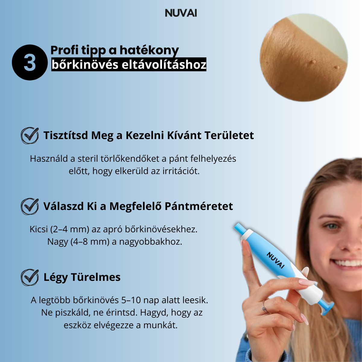A NUVAI küldetése, hogy otthon, biztonságosan és fájdalommentesen elérhető legyen a professzionális szintű bőrkinövés-eltávolítás. Termékeink az önbizalom visszanyerését és a hegmentes eredményt teszik lehetővé klinika nélkül.